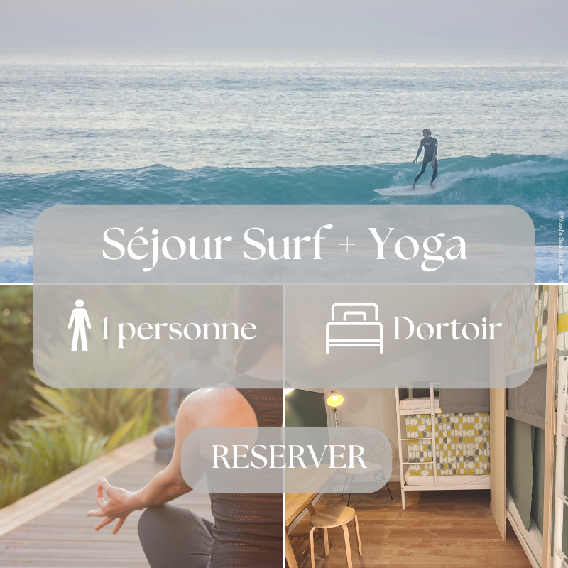 1 cours de surf : 2 h dont 1h30 dans l'eau, planche, combi et assurance incluse.Choisissez votre nombre de cours de yoga Yoga:Les cours de Yoga sont dispensés au Lodge en terrasse, ou dans nos shalas partenaires si besoin de s'abriter.1 séance de yoga: 1h d'Ashtanga, Hatha ou Vinyasa en fonction des jours !